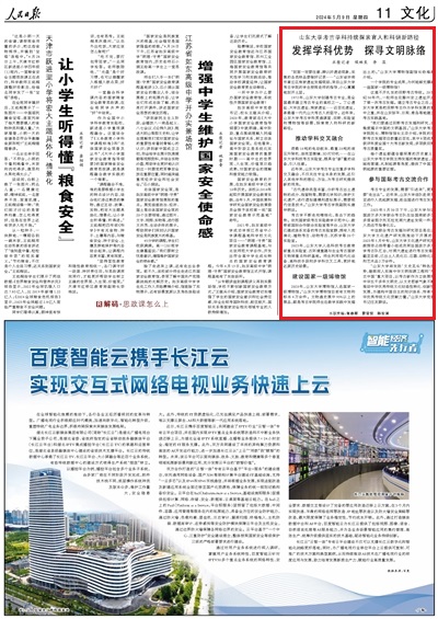 2024年5月9日,恰逢习近平总书记给《文史哲》编辑部全体编辑人员回信三周年之际,《人民日报》报道山东大学考古学科育人和科研新路径--《发挥学科优势 探寻文明脉络》。山东大学考古学科将勇担历史嘱托和时代使命,继续深入实施中华文明探源工程和‘考古中国’重大项目,以考古新作为立体展现百万年人类史、一万年文化史、五千多年文明史,以文史哲新气象不断推动中华优秀传统文化创造性转化、创新性发展,为建构中国自主的知识体系、传承中华优秀传统文化作出新的更大贡献。