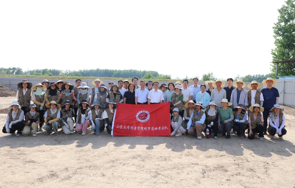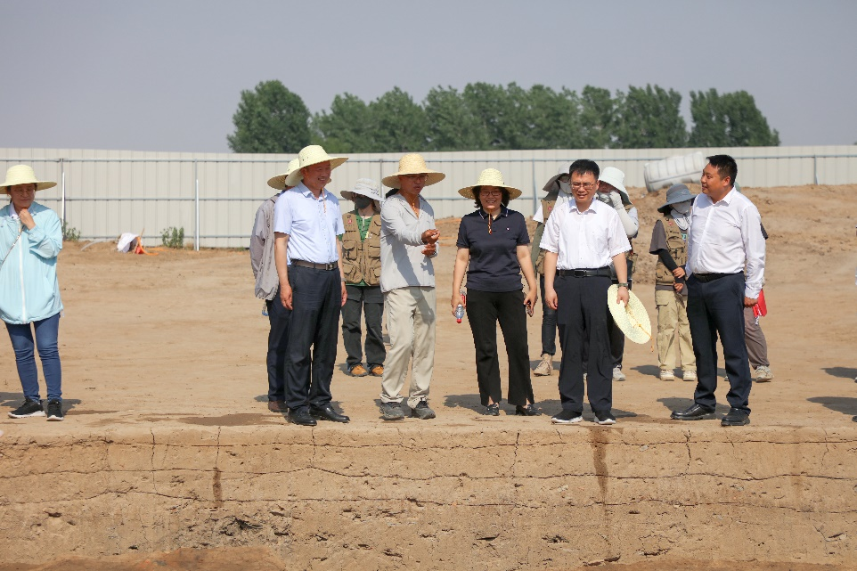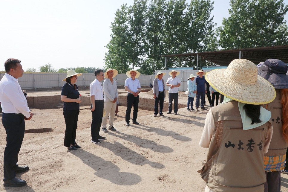 在发掘工地现场,李向阳与参与发掘的考古队师生进行交谈,向在高温下坚持发掘的师生表示诚挚的问候,向师生付出的汗水心血和卓有成效的工作表示充分肯定。他强调,田野考古实践对于考古学专业学生培养具有重要意义,只有亲身参与实践,才能真正学习专业技能、理解专业知识、提升专业素养,进而深入理解考古学对每个个体的意义、对整个时代的意义、对中华文明的意义。李向阳表示,发掘实习进入关键阶段,希望垓下考古队师生传承山大考古人不畏艰辛、甘于付出的精神,平安、有序、扎实、高效地完成各项工作,坚定文化自信,厚植家国情怀,为深入中国文明历史研究,传承中华优秀传统文化作出更大贡献。