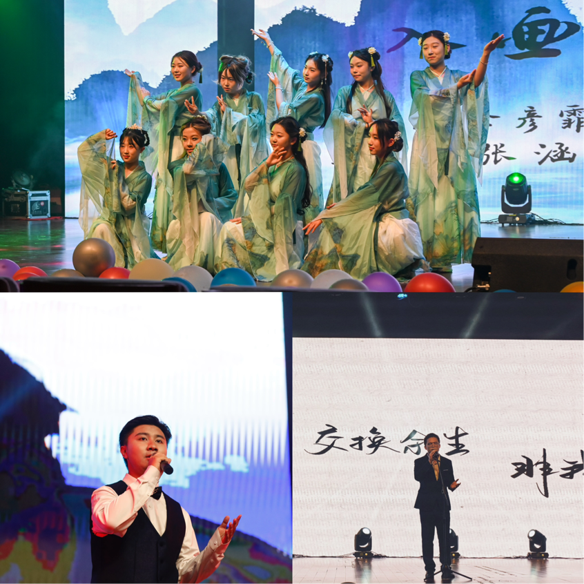 第三篇章,“子曰”艺术团的徐赫杨、李彦霏等同学带来舞蹈《入画江南》,把江南美景编织成灵动舞姿,引人入胜;陈海宾的《阴天快乐》倾诉衷肠,饱含对毕业生们的真挚情感;林楷尧的《交换余生》表达人生轨迹的来回交织,穿梭时空,归来仍留存美好。