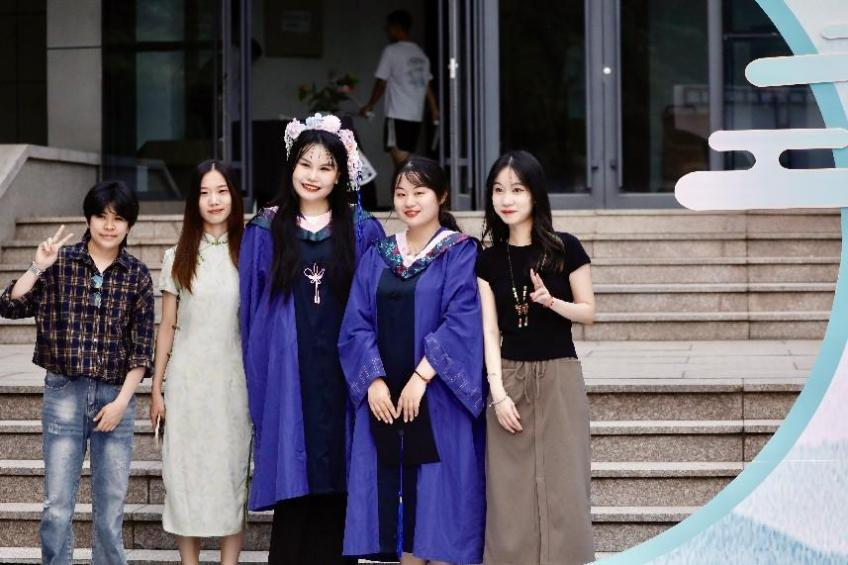 学院在音乐厅门前设置毕业拍照互动区域,歌会前,毕业生们纷纷合影留念,回忆记录毕业生们大学四年的青葱岁月。