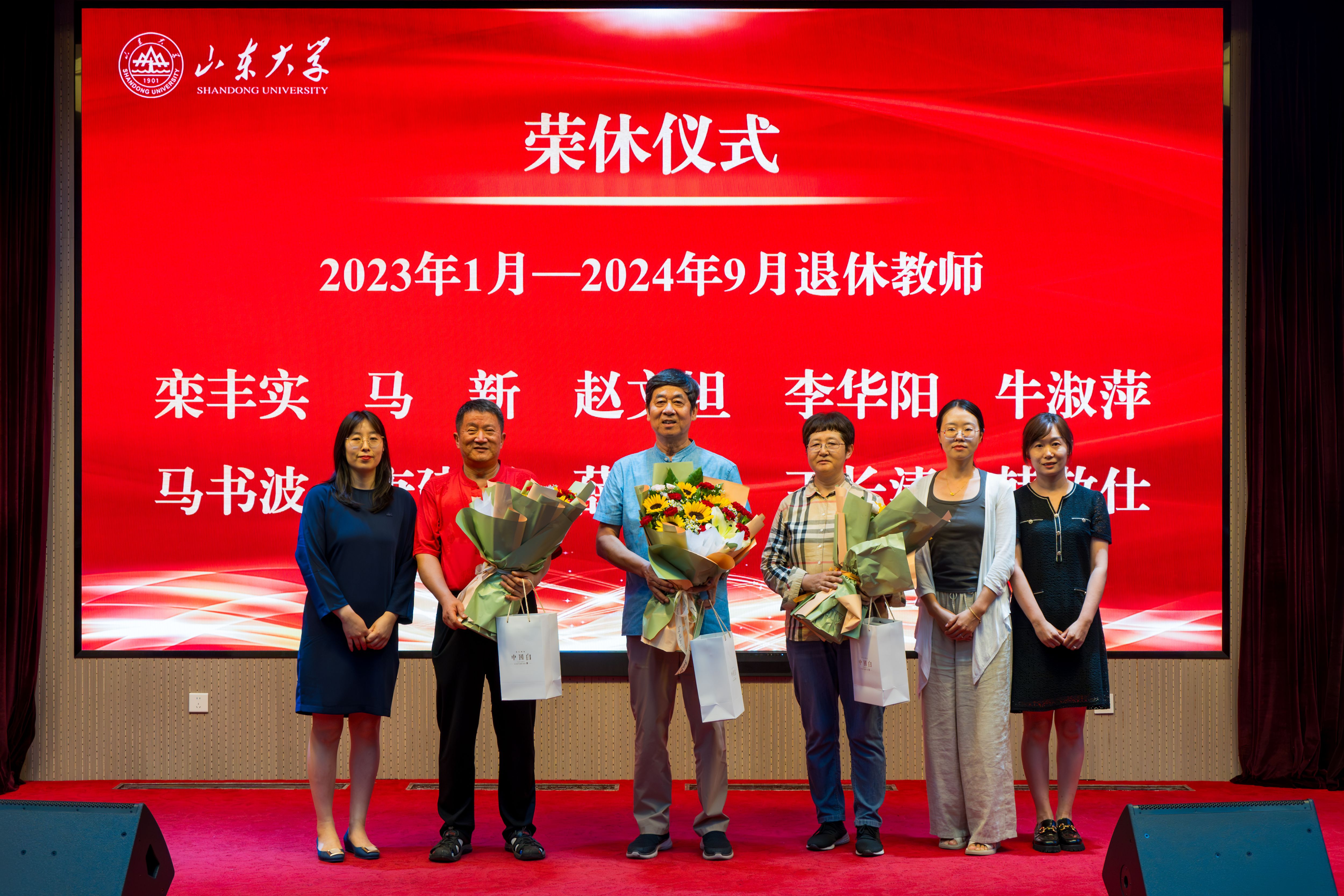 会议第一阶段为退休教师举行荣休仪式。王芬、代国玺向2023年1月至今荣休教师赠送纪念礼物,青年教师代表向荣休教师献花。各位荣休教师深情回顾了自己在学院的求学及工作经历,表达了对学院的感谢和期待。青年教师代表武绍卫、陆青玉,讲述了自己与学院老教师的故事,表达了对退休教师的敬意和祝福。