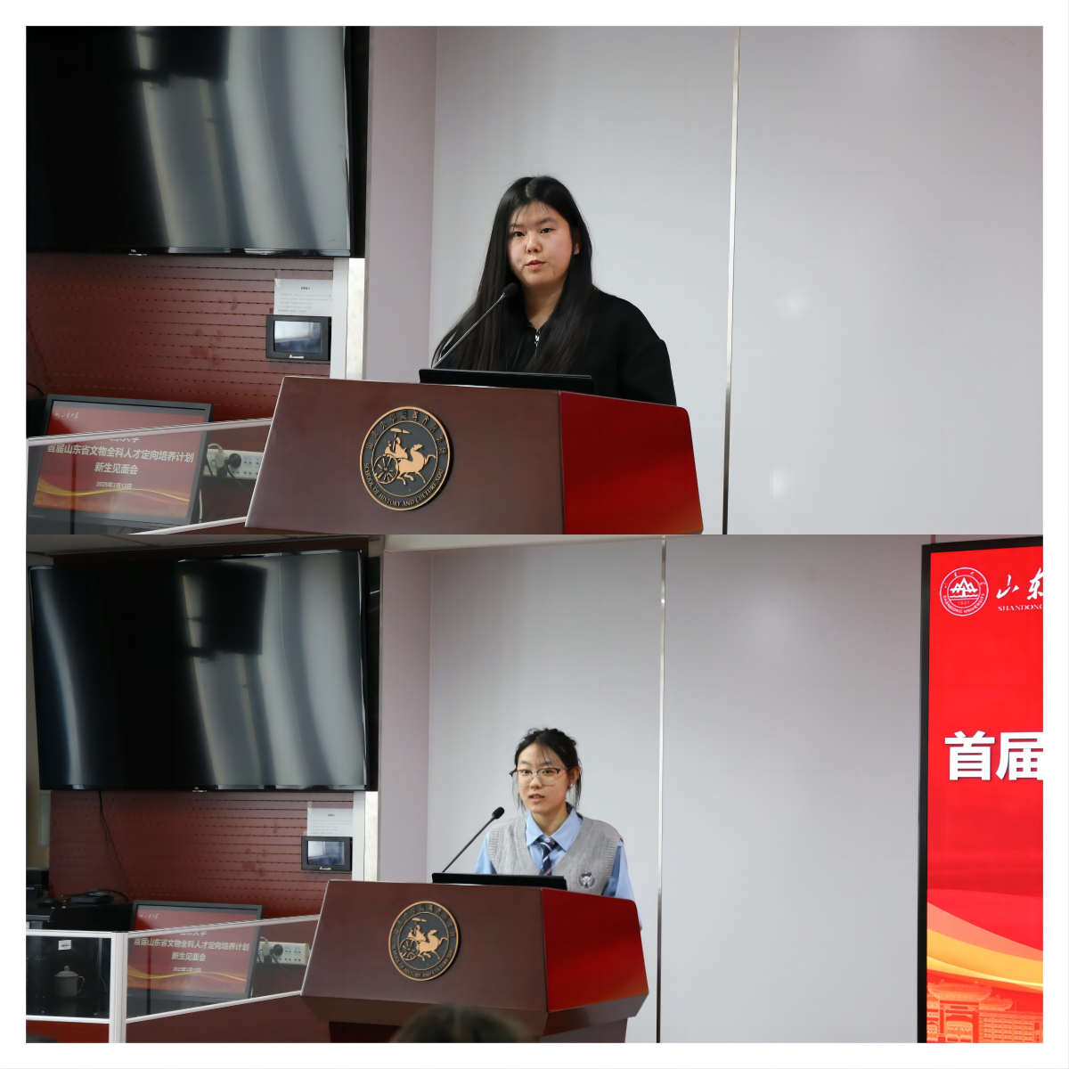 最后,文物全科人才培养计划2024级新生代表阎国婷、张小可分别分享了自己入学半年的学习感悟与个人规划,表达了为家乡文物事业贡献力量的决心。