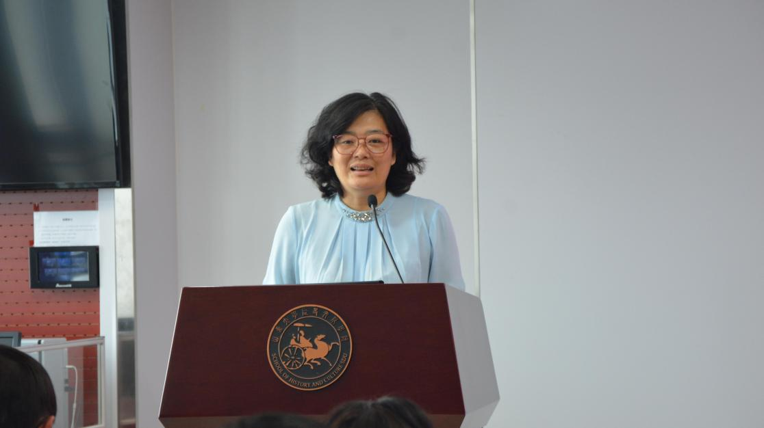 王芬介绍了山大考古学科的发展历程、师资力量、教育教学、人才培养等方面,以及在弘扬学术传统、对接文化强国战略、落实立德树人工作中取得的成绩。她指出,考古学科兼具深厚历史积淀与光明发展前景,学院将始终秉持“为国育贤”的初心,为青年学生成长成才提供平台和机会,通过专业化、系统化、多元化的培养模式,不断提升学生的专业能力和实践本领,助力其成长为新时代考古英才。
