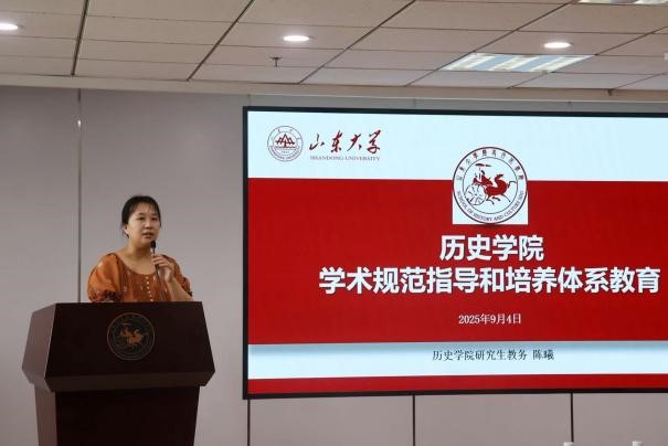 历史学院崔华杰教授以“从历史走进山大”为主题开展校史校情教育讲座,他生动梳理了山东大学发展历程,展现学校始终与国家同呼吸共命运的时代担当,帮助新生深入了解学校发展进程,深切领悟山大精神,从校史中汲取爱校荣校的力量源泉。