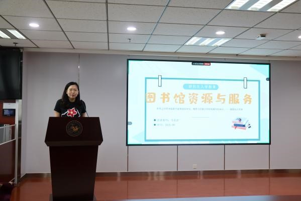 图书馆冯宸劼老师主讲了图书馆资源利用课程,从图书馆概况、新生如何开通借阅权限、图书馆开放时间与座位预约、馆藏资源与数据库、特色服务、信息服务等方面展开讲解。