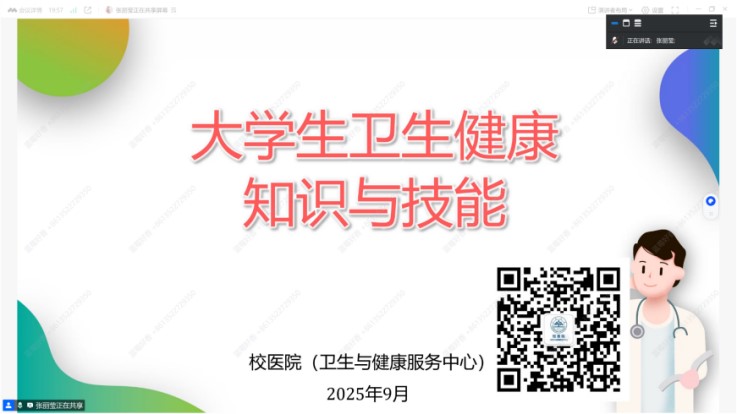 校医院张丽莹老师为新生进行了健康教育讲座。讲座解读了健康生活方式、卫生应急技能、校园就医流程及医保政策,重点强调了健康膳食与传染病预防。