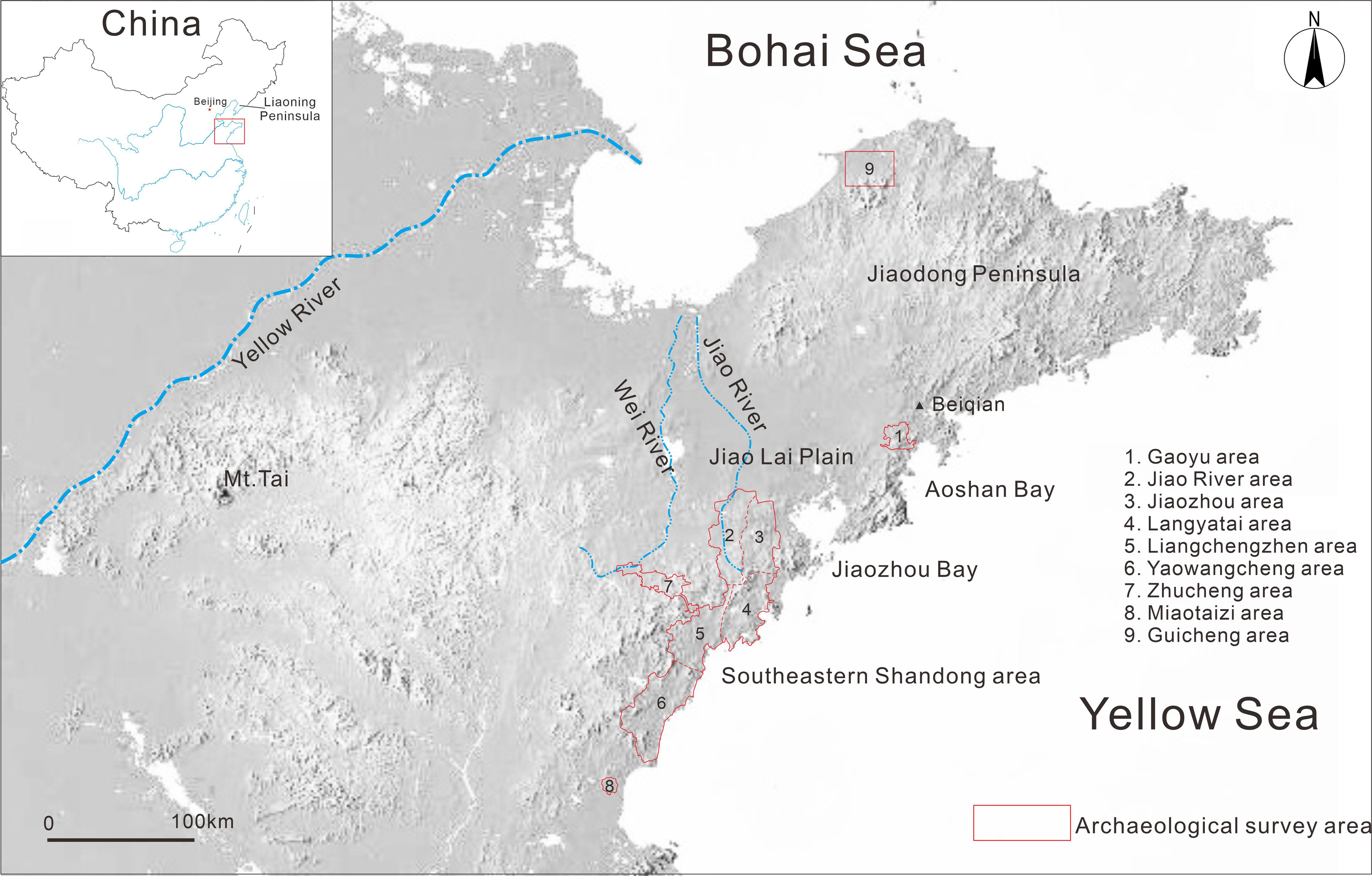 山东大学中美联合鲁东南区域系统调查自1995年开展至今已近30年,调查范围从最初的日照沿海地区逐年向北扩展至青岛市黄岛区、胶州市以及潍坊市高密市、诸城市境内,截至2023年底,覆盖范围达到3800平方公里,是亚洲乃至全球范围内历时最长、覆盖范围最大的区域系统调查项目之一,累计发现从新石器时代至秦汉时期聚落超过6000处,为还原鲁东南沿海地区自新石器时代至商周时期、秦汉时期数千年的区域人口和政治演化提供了宏观图景。