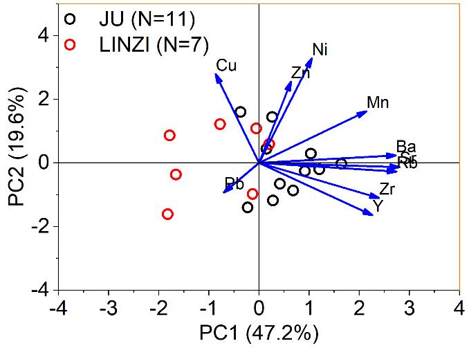 图 6 两处遗址出土钱范的微量元素组成差异