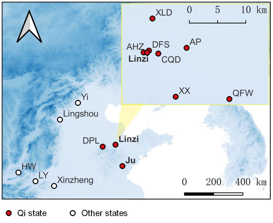 齐国以发达的工商业而闻名,也是铸币和钱范出土最多的地区之一。本文对莒国故城和临淄小城西门外两处齐国铸钱遗址出土的明刀范、大刀范和賹化范( 图 1 )进行了分析,使用扫描电子显微镜能谱仪、热膨胀仪、红外光谱、p-XRF、XRD 和比重天平等多种分析技术,结合模拟试验和尺寸测量,对钱范的材料特性、修复和再利用情况、钱范的标准性等问题进行了分析。