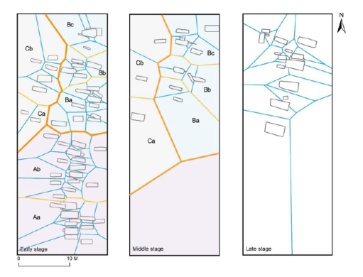 本研究选取焦家遗址2016-2017年度发掘的一处完整墓区(共计86座墓葬),系统运用地理信息系统(GIS)空间分析方法,整合墓葬面积、棺椁结构、随葬品组合等多元信息,创新性地采用三种定量空间建模技术(加权泰森多边形分析、K近邻空间约束聚类、核密度估计)构建了一套可量化、可验证、可复现的计算分析流程,从历时性演变的角度解析了该墓区所反映的社会组织结构、社会内涵的历时性变迁等问题,为墓葬考古学研究提供新的视角和方法。