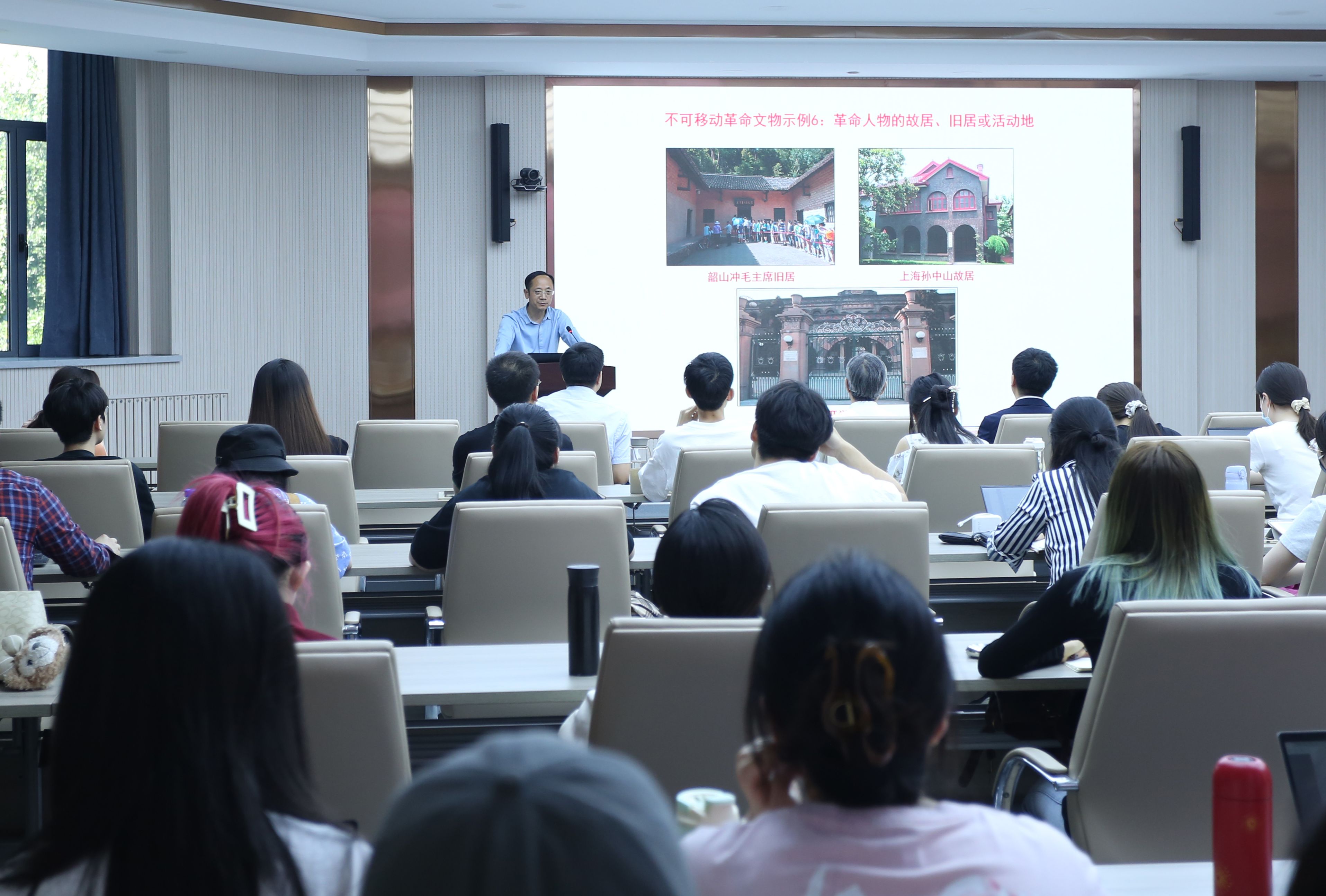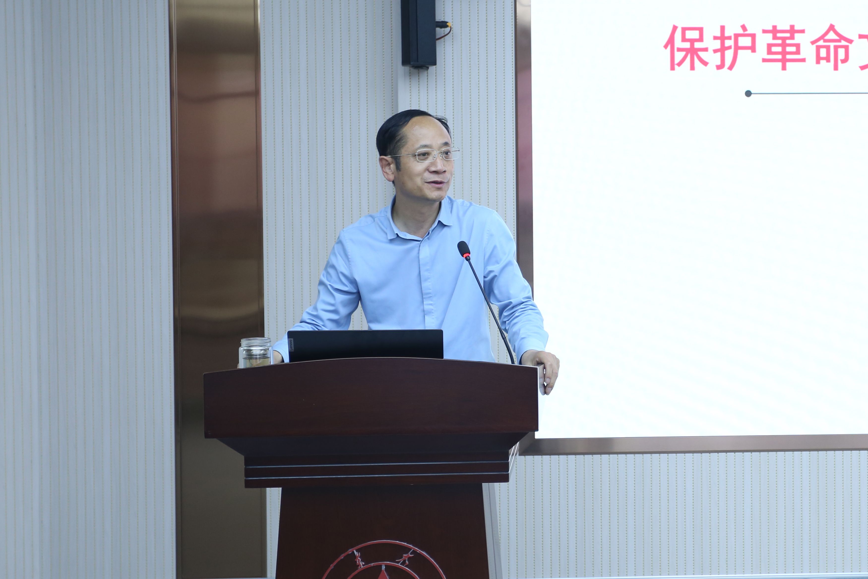 顾玉才首先对革命文物概念及其需要厘清的一些概念问题展开说明。他指出革命文物分为“可移动”和“不可移动”两大类,强调我党在很早便注意保护革命文物。讲座结合《关于实施革命文物保护利用工程(2018-2022年)的意见》以及朱德的毛毯、“军民合作、抗日胜利”新门神版画等不同种类革命文物的丰富案例和故事,对革命文物的作用进行了阐释。随后,通过梳理习近平总书记关于革命文物保护利用的重要论述和他在地方上所做的文物保护实践,强调革命文物承载党和人民英勇奋斗的光荣历史,记载着中国革命的伟大历程和感人事迹,是弘扬革命传统和革命文化、加强社会主义精神文明建设、激发爱国热情、振奋民族精神的生动教材。每件革命文物都十分珍贵、每个场景都耐人寻味,要经常回忆、深入思索,从中解读中国共产党的初心与使命。