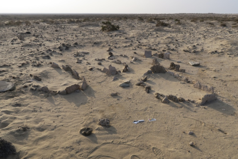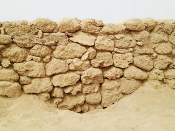 在无人机在高空400米拍摄的航拍照片里,流沙中显示出一个方形的阴影区域。考古队按图索骥,对这一区域进行了清理发掘,一座保存良好的方形建筑出现在视野中。其边墙长约40米,墙体用珊瑚石垒砌而成,这是当地一种很常见的建筑材料。唐代的杜环曾在怛逻斯之战中被俘,流浪中东地区十多年后才返回中国,他撰写的《经行记》描述了中东地区的房屋建筑方法,称之为“造屋缣瓦,垒石为壁”,与考古发现的建筑遗址风格非常吻合。