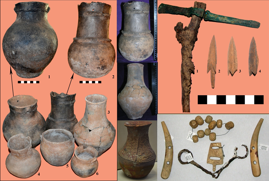 迈耶米尔文化主要分布在比肯文化的西、南部,即今哈萨克斯坦境内。其墓葬出土了大量随葬品,包括金属马衔等车马器、背面装饰有大角鹿的铜镜以及保存完好的缰绳等。鹿石文化主要分布在比肯文化的东、南部,其墓葬被盗掘严重,出土遗物主要为“鹿石”。提什金教授对中俄蒙地区鹿石的发现和象征意义进行了详尽的解释,并认为鹿石这一文化遗存的使用可能是游牧民族帝国典型的文化象征。