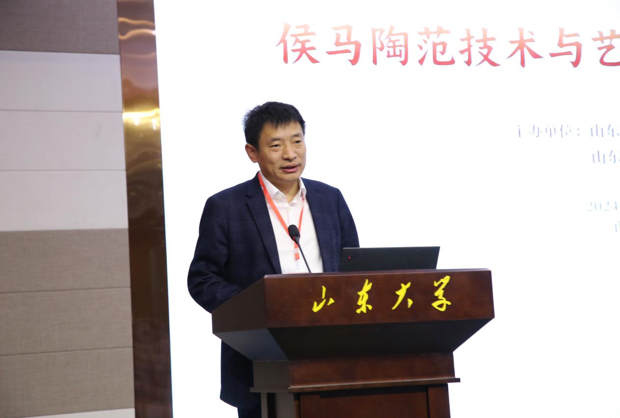 王芬介绍了山东大学考古学科的师资队伍及平台建设情况。她表示,随着新一轮技术革命加速演进,从考古发掘研究到文物保护,从价值阐释到展示传播,文物与科技结合日渐紧密,科技对文物研究的支撑引领作用日益明显。本次研讨会议主题将陶范的技术与艺术相结合,学术含量高,报告内容丰富,是真正的文理学科交叉的盛会。