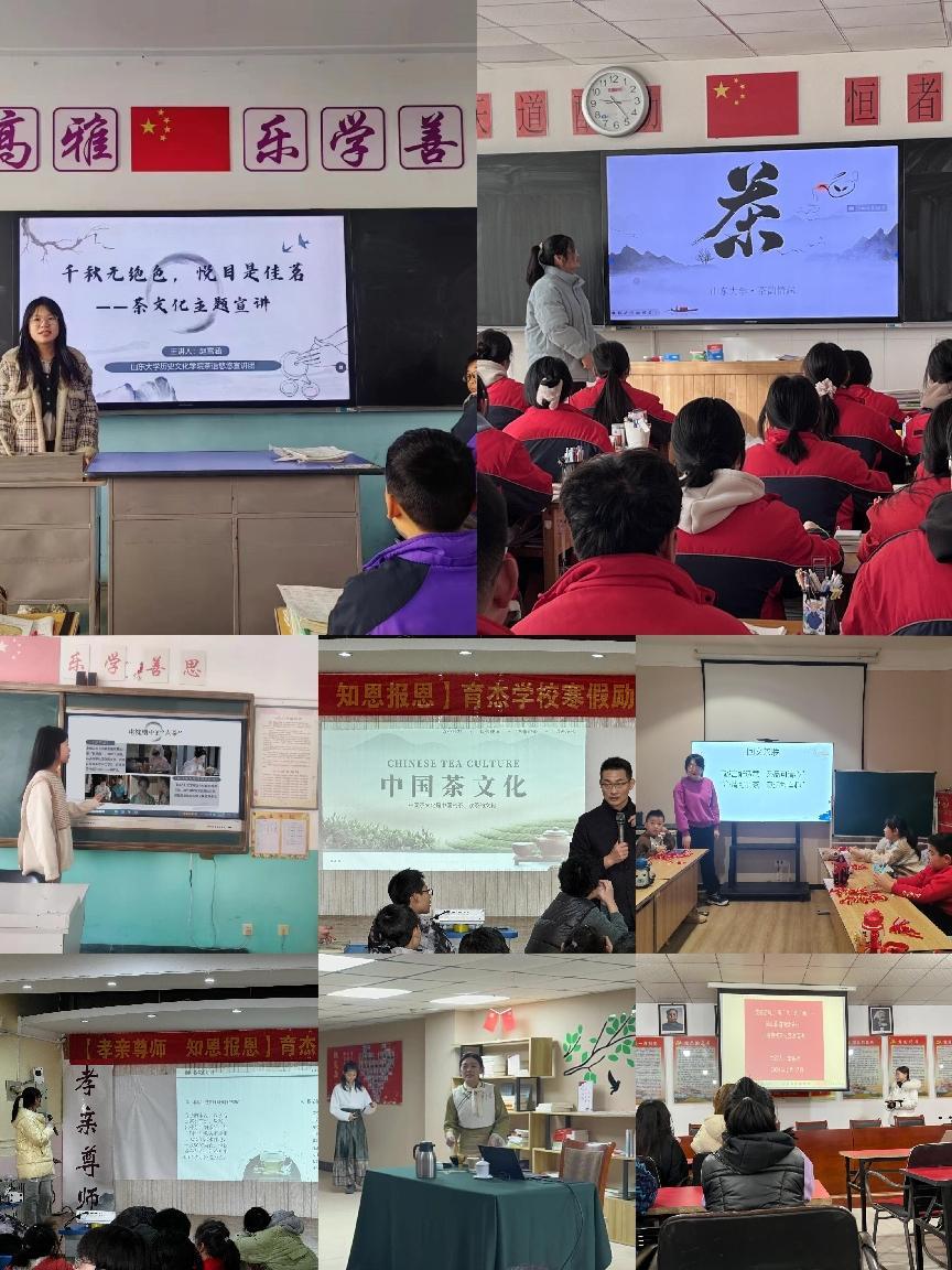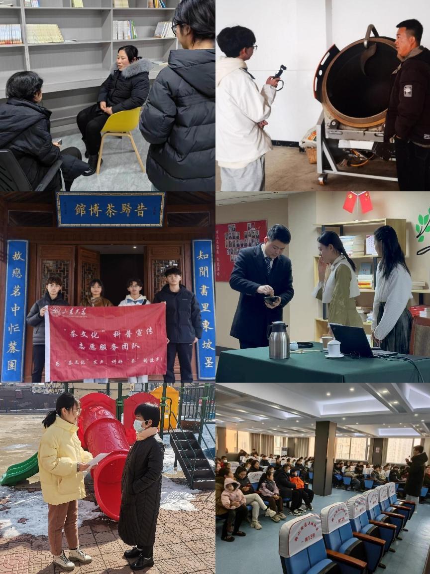 凝心聚力勇担当,知行合一谱华章。翻山越岭,志愿者们深入翠绿的茶园,探寻茶叶生长的源头与奥秘;踏足校园,志愿者们将茶文化的火种播撒进青少年的心田;穿梭街巷,志愿者们深入挖掘当地特色饮茶习俗,在对坐畅谈中体悟浓浓的地域风情。此外,不少宣讲队伍深入社会课堂,重走革命故地,实地寻访了贵州毕节、四川成都、云南临沧、山东泗水等地的红色茶乡,在一线实践中感悟中国式现代化乡村振兴之路,累计完成《“茶文化”科普宣传——走进红茶之都·云南临沧》《甘茶染山川——四川成都茶文化调研》《山东大学泗海承风茶文化宣讲队赴山东泗水开展茶文化社会实践调研》等实践报告23篇,社会调研101次,现场访谈42次。宣讲志愿者们纷纷表示,在宣讲过程中,听众们认真听讲、积极互动,洋溢的热情和求知的眼神透露出对茶文化体验充满了好奇与兴趣,表达了对于中国传统茶文化的喜爱和向往。宣讲活动之外的社会调研与访谈使象牙塔里的年轻人有了难得深入中国基层社会与民间治理层面的机会,乡音乡情里的发展与困惑、难题与展望,在青年人的心中也种下了“到祖国最需要的地方去”的热切期盼。