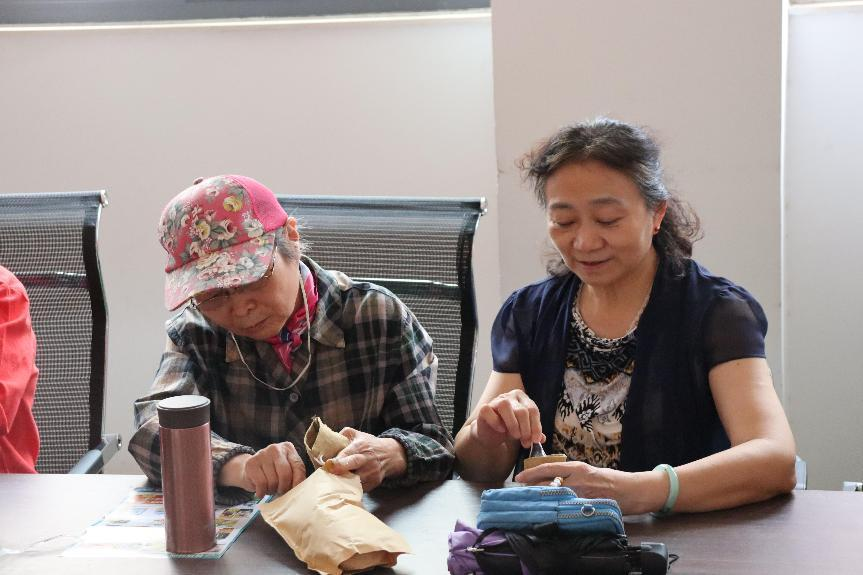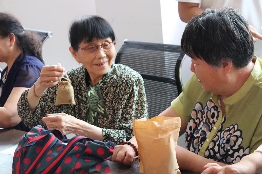 青志协成员严文荟向居民分享中医养生手册知识,手册分为认识中医养生、熟悉中医调理、熟悉中草药和总结四部分,知识丰富,内容全面,增加了社区居民对中医药知识的认识和理解,倡导关注健康生活。另外,青志协成员带领社区居民制作中药香囊。端午将至,青志协特地准备了艾草作为主要材料,辅之以薰衣草。艾草驱蚊安神,薰衣草舒缓心情、提香助眠。青志协成员讲解制作步骤后,社区居民积极认真地投入香囊制作中,一个个精致又实用的香囊“出炉”,社区居民在亲手体验香囊制作中感受到中医药的魅力。