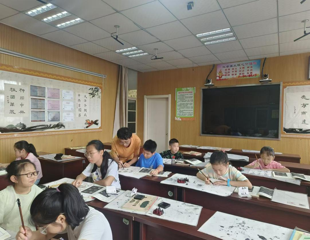 在第一堂特色课程中,苏立朋同学给孩子们带来了中华传统文化课程:书法课。笔墨生灵韵,丹青溢风采。作为中华传统文化的瑰宝,书法具有深厚的历史底蕴和文化内涵,对于孩子们来说,学习、练习书法不光具有完善健全人格,促进全面发展的好处,还能让孩子们更细致、更深入地了解、领悟中华传统文化的具体表现形式和思想内涵,在孩子们的心中种下一颗希望之种,力促“文化之传承,艺术之弘扬”。在课堂上,苏老师从基本的笔画讲起,在书写、临摹和讲解过程中注重对孩子们观察力、专注力及审美品质的培养。孩子们专注的神情、认真的书写、积极的提问反馈、激烈的交流讨论,无疑是孩子们融入于书法艺术之乐趣中最真实的写照。