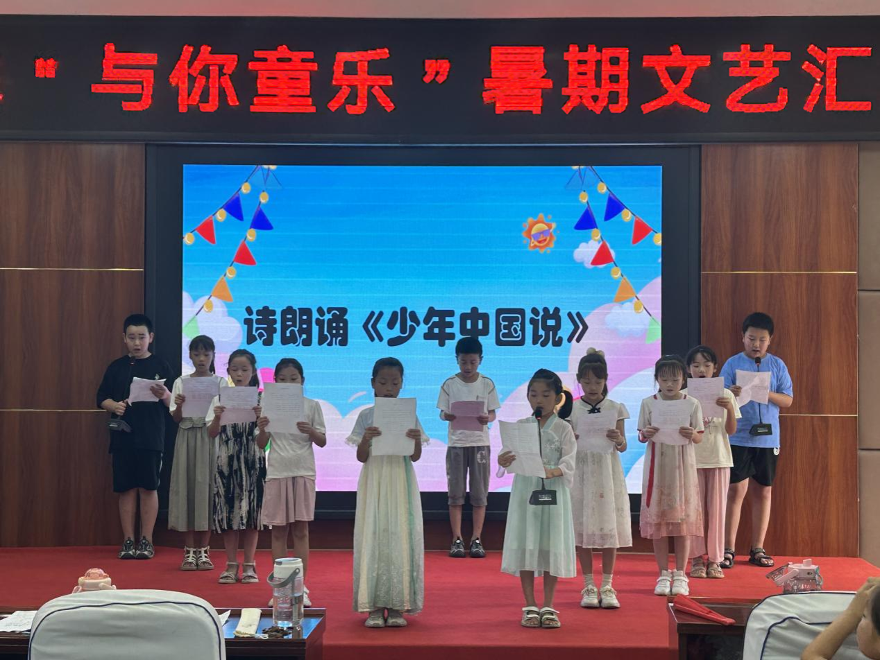 7月26日下午,乡村振兴服务社团洙泗问山支教队与金庄镇综合文化服务中心、金庄镇文学艺术界联合会合作,在济宁市泗水县金庄镇金华社区儿童服务站礼堂顺利举行金庄镇“与你童乐”暑期文艺汇演。全体支教队、在站学生及部分家长参加,共同见证孩子们的成长足迹。