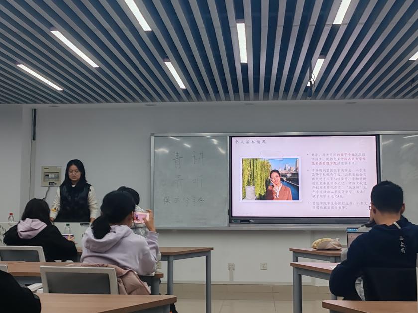 然后是来自历史学院历史学专业2021级本科生,现推免至北京大学国际法学院法律(非法学)专业的王昕娟学姐。王昕娟学姐在向大家介绍推免的具体时间线后,详细的为同学们她参加北京大学、上海交通大学、浙江大学等院校的夏令营的心得感悟,为有相关兴趣的同学提供了宝贵的经验。