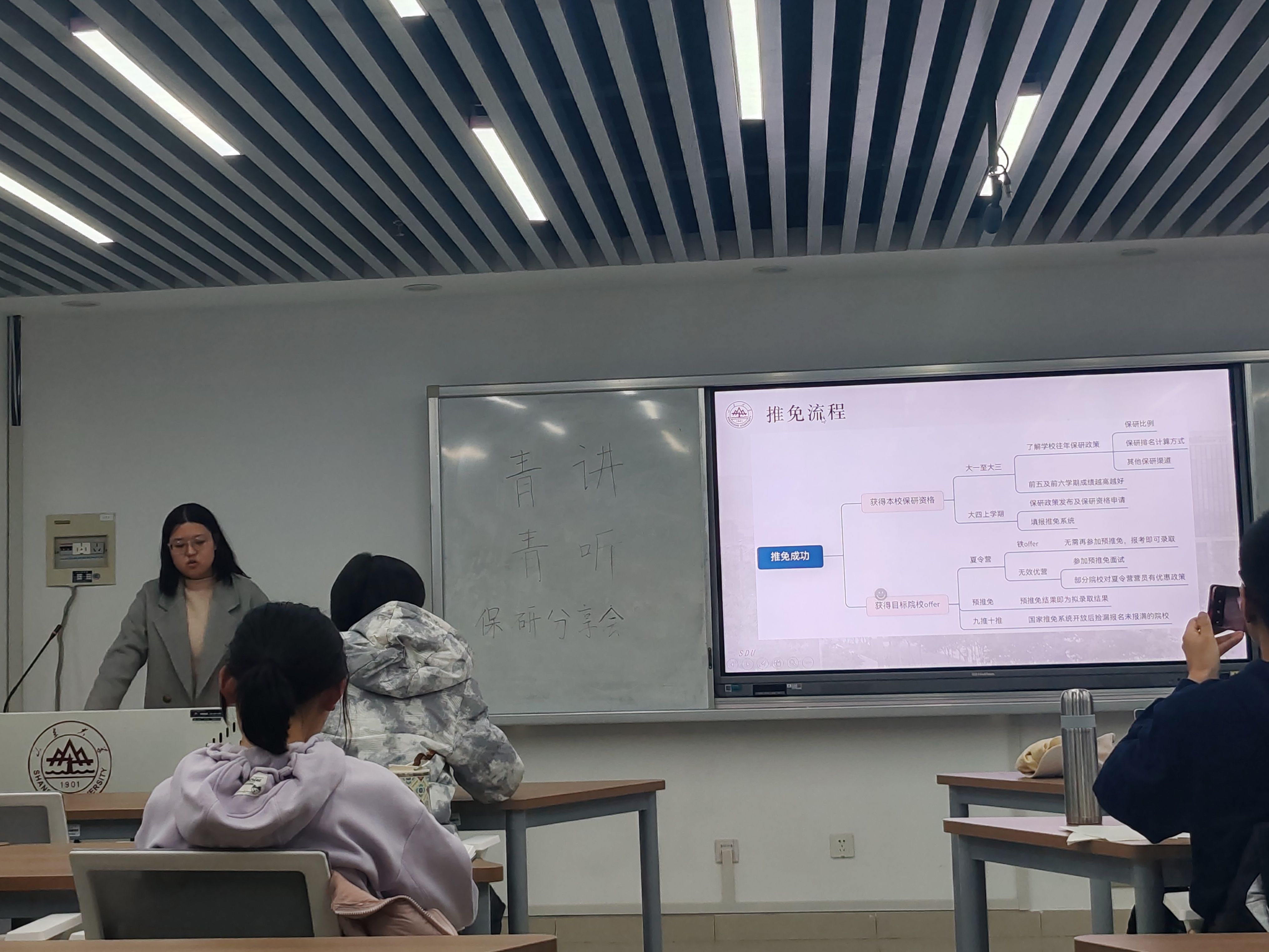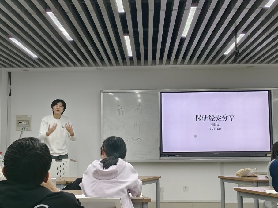 青讲青听——“学术有研”保研专题讲座于11月18日晚在知新楼A1116成功举办。我们有幸邀请到张博森、王昕娟、刘索焓、赵予康、樊华五位优秀的学长学姐,为同学们分享自己的保研经验,给予大家关于升学的宝贵建议。
