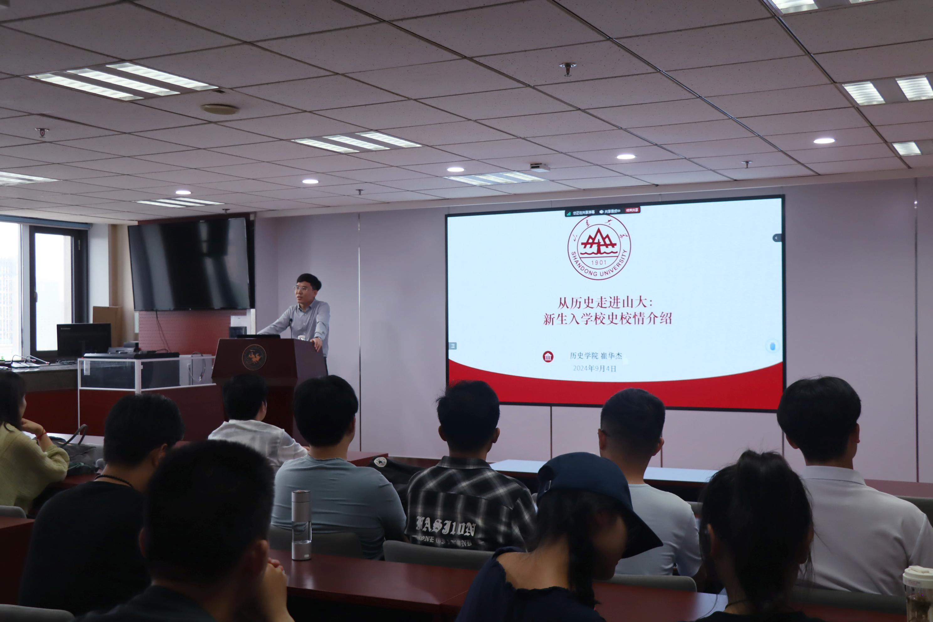 9月5日14点30分至16点,新生校史校情教育讲座在知新楼A1017举行。崔华杰教授进行了主题为“从历史走进山大”的讲座,以生动有趣的讲解方式介绍了山东大学建校123年的悠久历史、历届优秀教师以及知名校友等,增强了研究生新生对学校发展历程的了解程度和自豪感。讲座最后,崔华杰引用习近平总书记对青年人的嘱托语录,以此寄语2024级研究生同学,希望同学们能努力奋斗、积极进取,在伟大时代中有所建树。本次教育帮助新生更好地理解了学校的办学宗旨、校训校风,激励新生在接下来的研究生生涯努力弘扬山大精神,争做新时代的优秀山大学子。