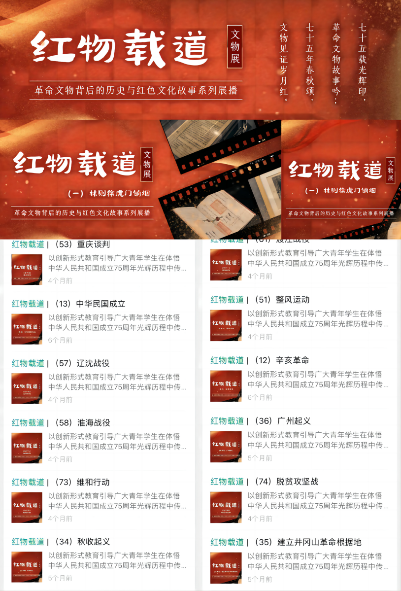 “红色文物”——75件红色文物故事图文展播。通过新媒体平台连续推送75篇“红物载道——革命文物的历史与红色文化故事系列展播”,与山东大学附属中小学幼儿园等联合打造中华文物科普课堂,献礼中华人民共和国成立75周年,引导学生传承红色基因、赓续红色血脉。