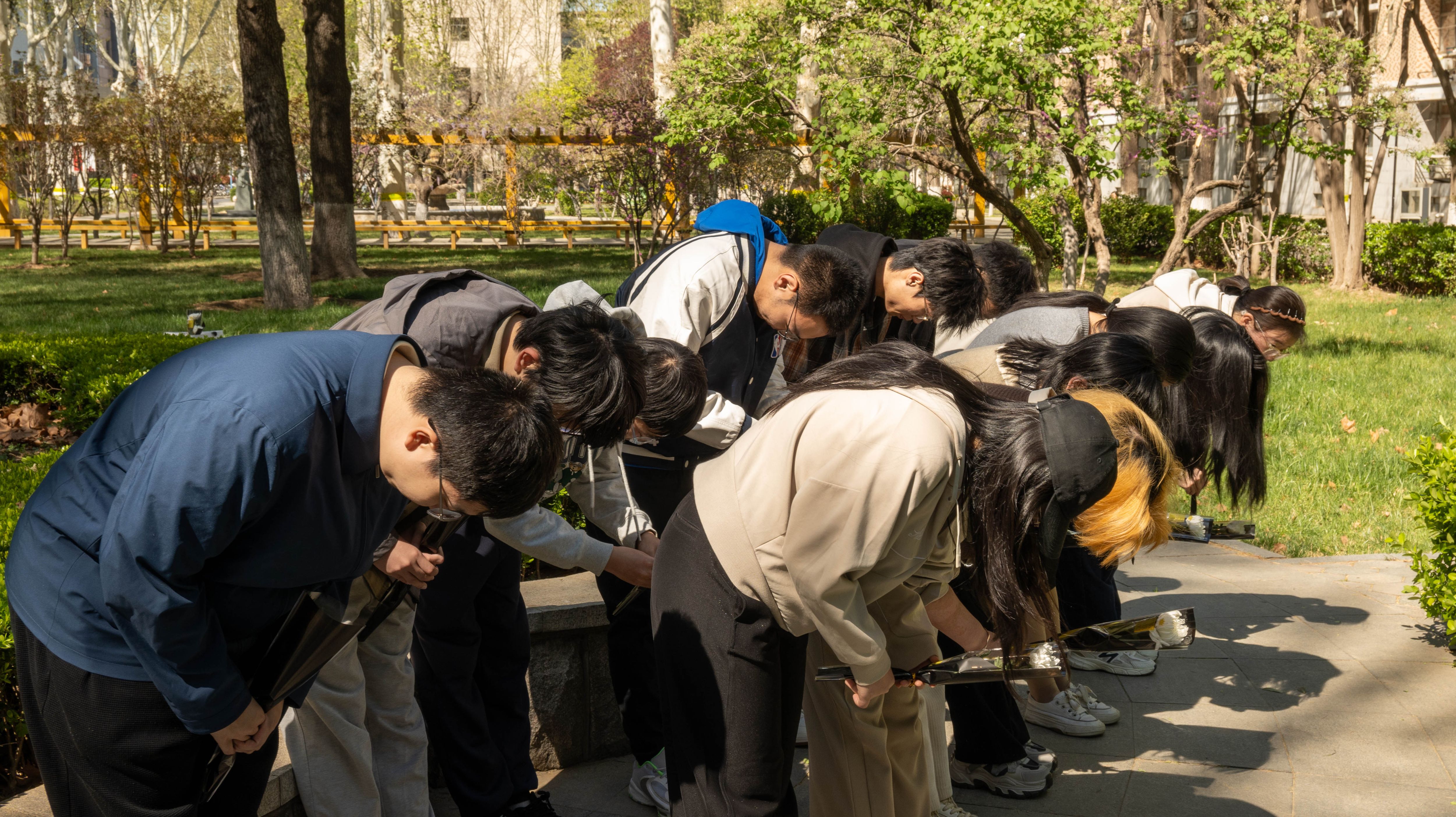 鲜花寄情,传承精神火种。全体学生依次向雕像敬献鲜花,并深深鞠躬,表达对先贤的深切追思,全体同学表示,在新时代新征程上,将以先辈为榜样,在学术道路上勇攀高峰,以史学之光点亮前行之路,续写属于山大的辉煌篇章。