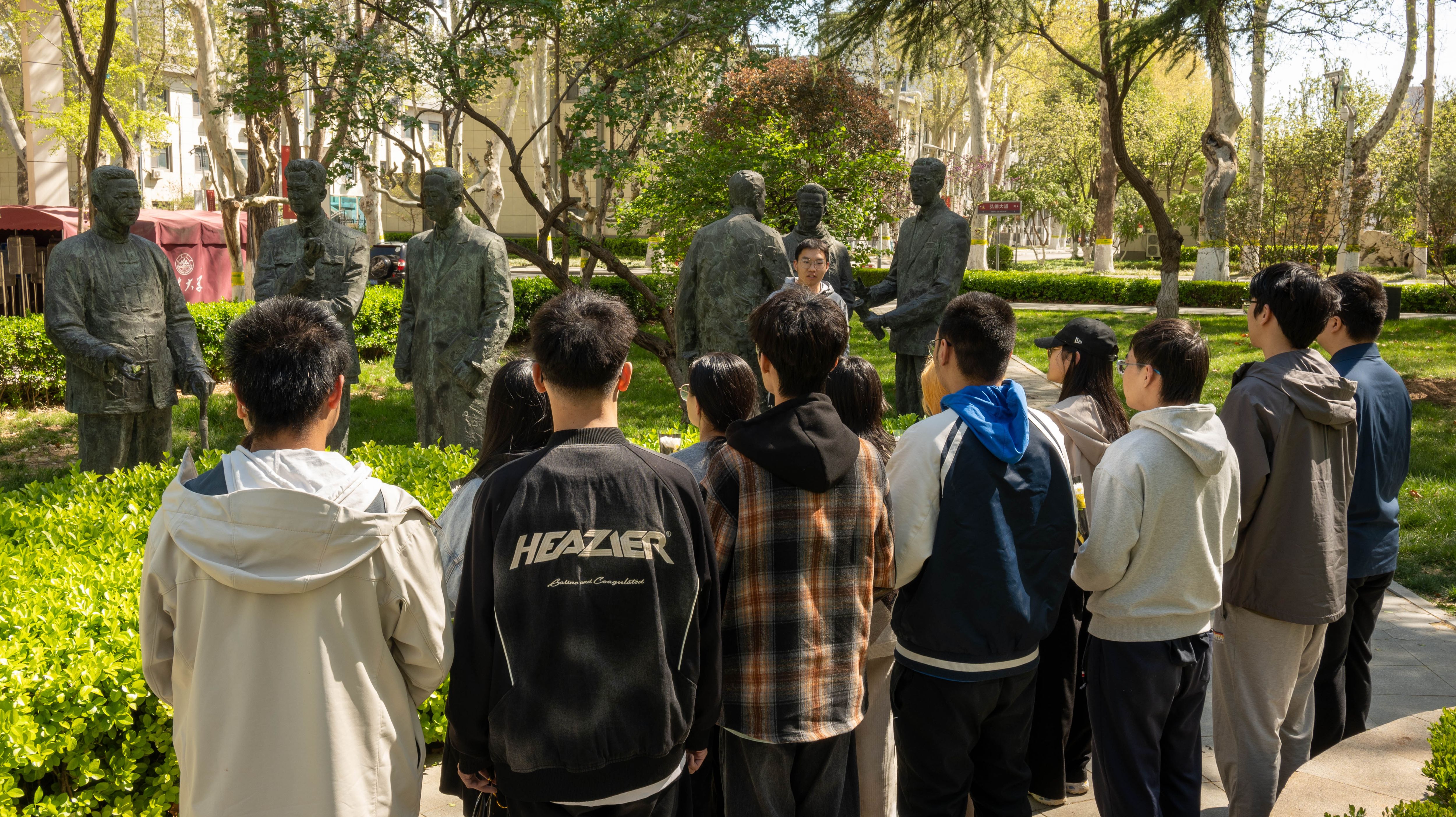 学生会组织学生代表,于中心校区“八马同槽”雕塑前开展清明献花缅怀活动,通过清扫塑像、追忆先贤事迹、敬献鲜花等形式,传承山大史学精神,弘扬爱国荣校情怀。