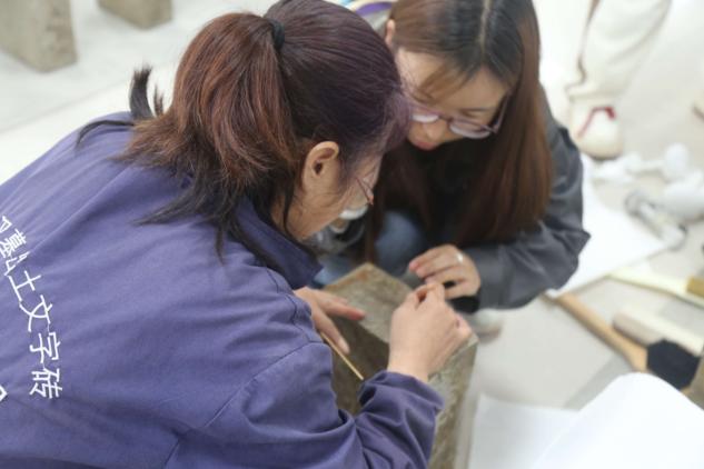 随后,大家走进文物库房,直面“会说话的砖木”。M2汉墓出土的1.3万余块青砖中,逾万块完整保留着朱书、墨书、刻画文字及符号,甚至还有汉五铢的印痕。同学们在指导老师带领下体验了传统拓印技艺,将砖文“复刻”于宣纸之上。而在黄肠木存放区,每根柏木上的墨书汉隶清晰可辨,铭刻着千年前的年号和工匠、监工之名。“这些文字让冰冷的文物有了温度,仿佛听见历史的心跳。”一位同学感慨道。