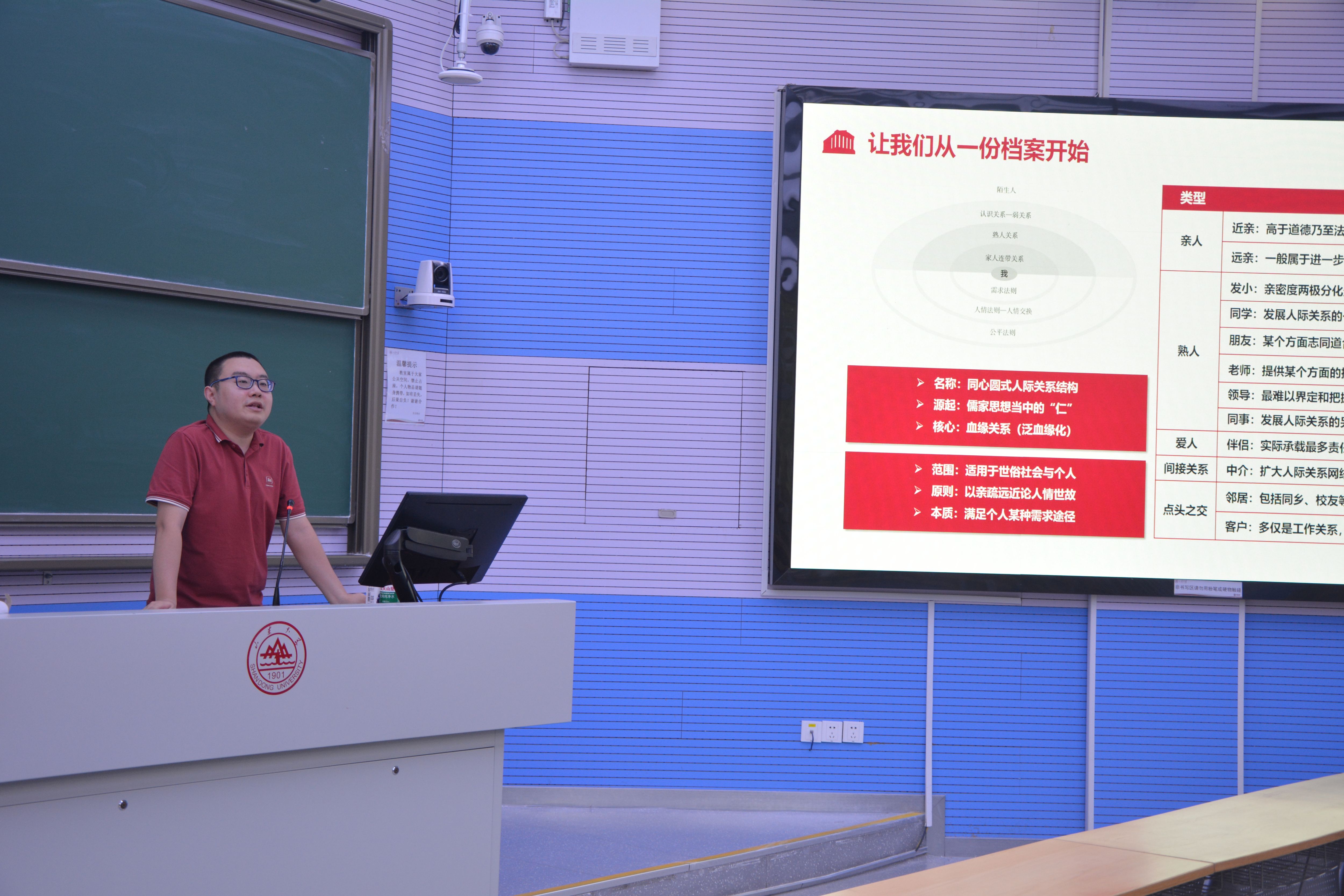 讲座伊始,刘紫奕老师以“同心圆式人际关系结构”为引,分析了不同类型的人际关系以及相应特点,强调了人际关系网络的复杂性与重要性。他指出,现代社会人际关系处理面临着新的挑战与机遇,学会培养良好的人际关系十分重要。
