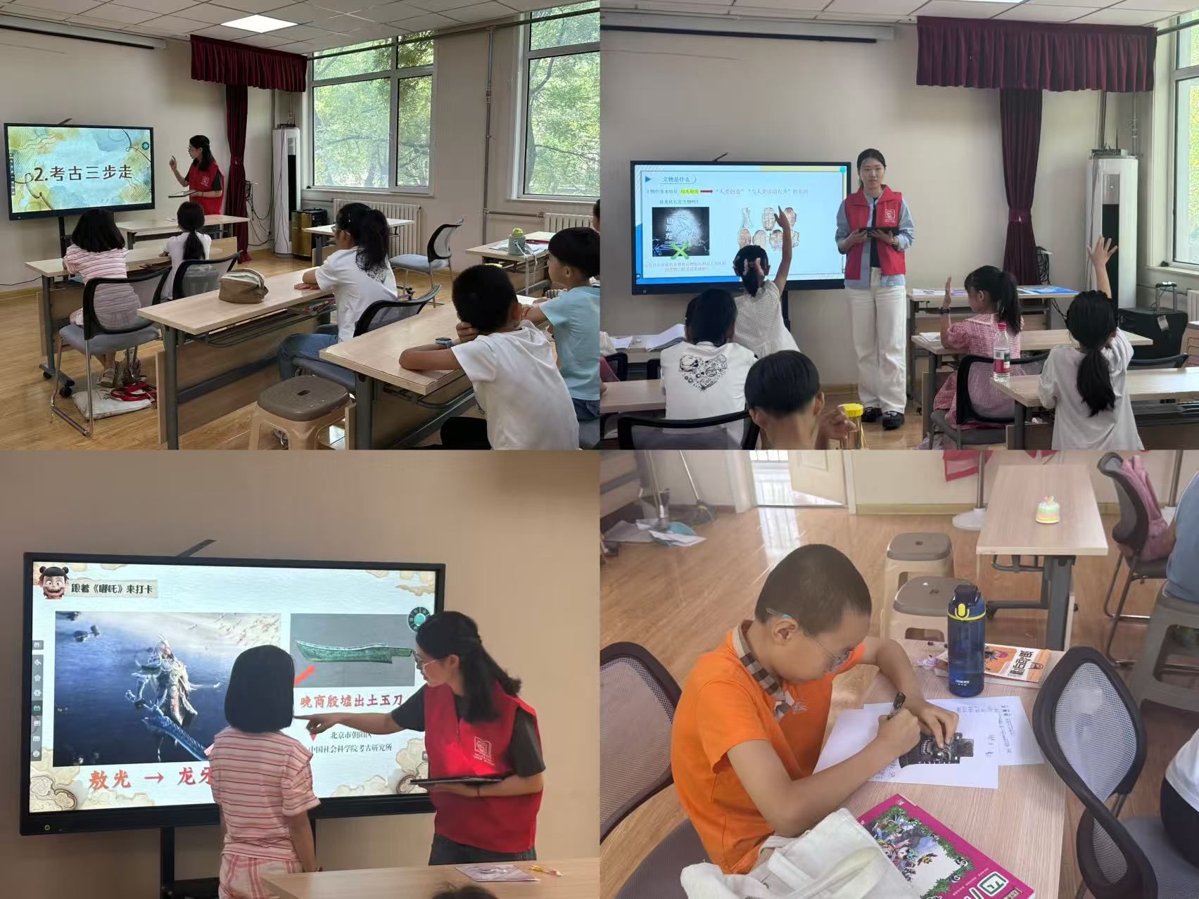 “文脉筑梦”社会实践队响应学校“百队百场进社区”专项活动号召,走进山大路社区、鑫达社区,围绕考古学、历史学、博物馆三大主题,以“趣味考古、易懂历史”为核心,设计《宝藏从哪儿来:走进考古世界》《话说尧舜禹》《文物也有身份证》等11节课程,结合动画元素、实物对比、模拟操作等形式,面向100余名青少年开展考古科普,将专业概念转化为童趣内容,让青少年在体验中理解知识,增强文物保护与文化传承意识。