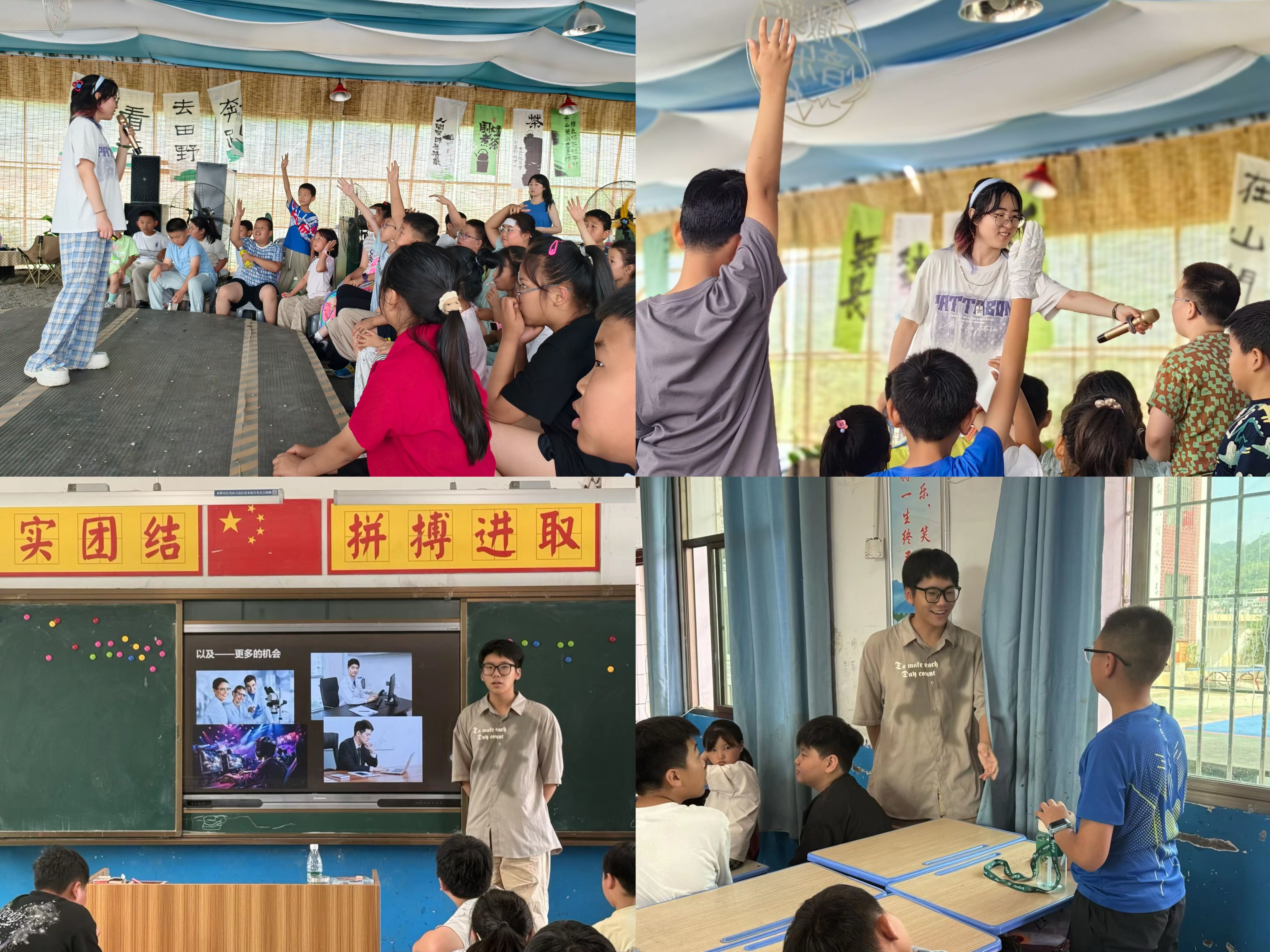 学子立足学科专业特色,走进乡村、社区、学堂、农场,通过文化课堂、情景模拟、户外实践等多元形式开展教育实践活动。