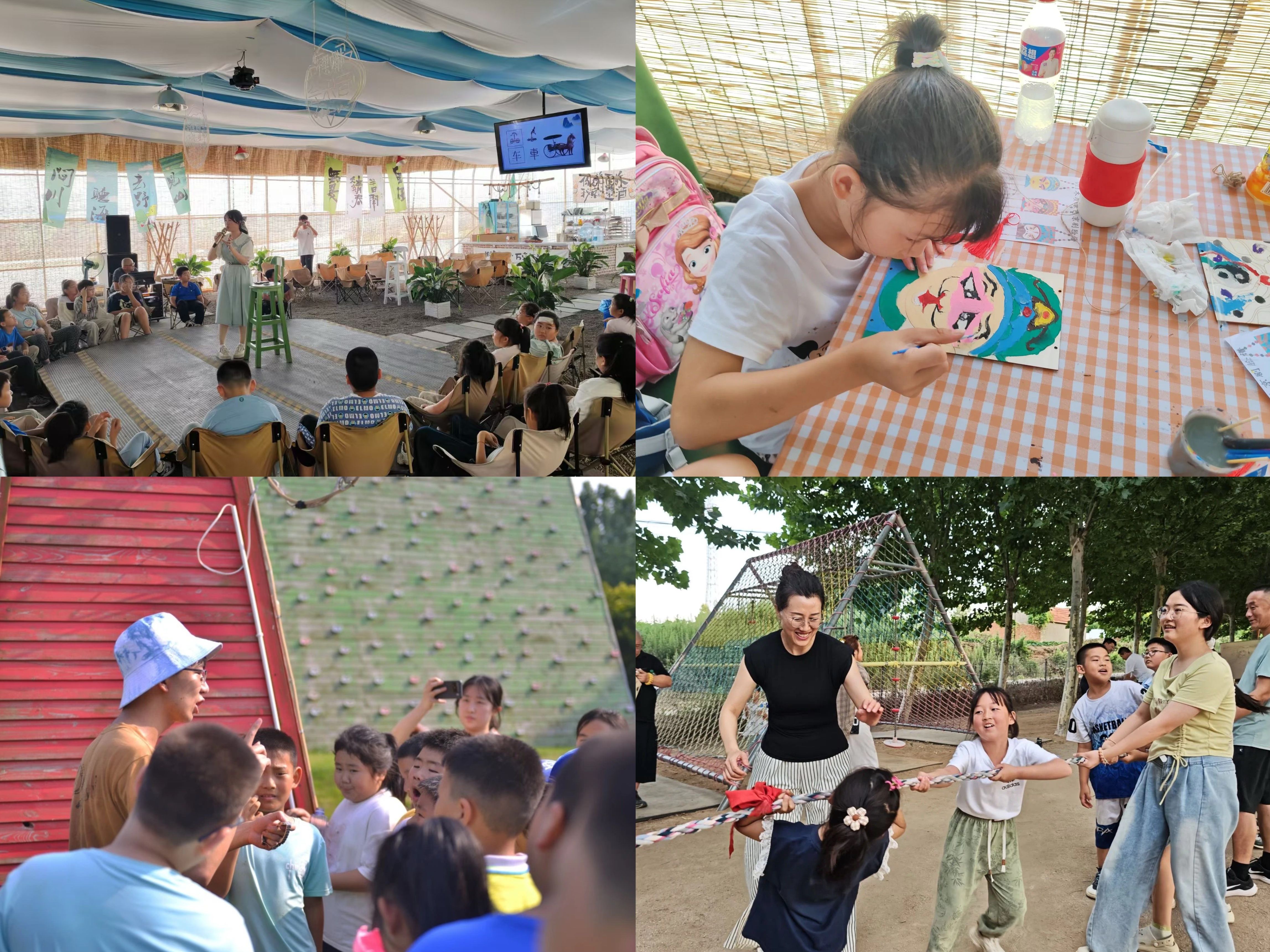“海韵扬帆”支教队在威海荣成撒野农场开展“一起来撒野”主题支教,采取“文化传承课堂+户外实践体验”的形式,打造《文化溯源:让古老文字“活”在课堂》《穿越时空:沉浸式触摸历史脉络》特色“谷粒”课堂,通过甲骨文猜字、历史情景剧、中华武术、京剧脸谱板绘等,让孩子们触摸文明脉络;开展匍匐沙地、攀爬树干等野外挑战,急救包扎、绳结搭建等生存技能训练,让孩子们在实践中强健体魄、磨砺意志。