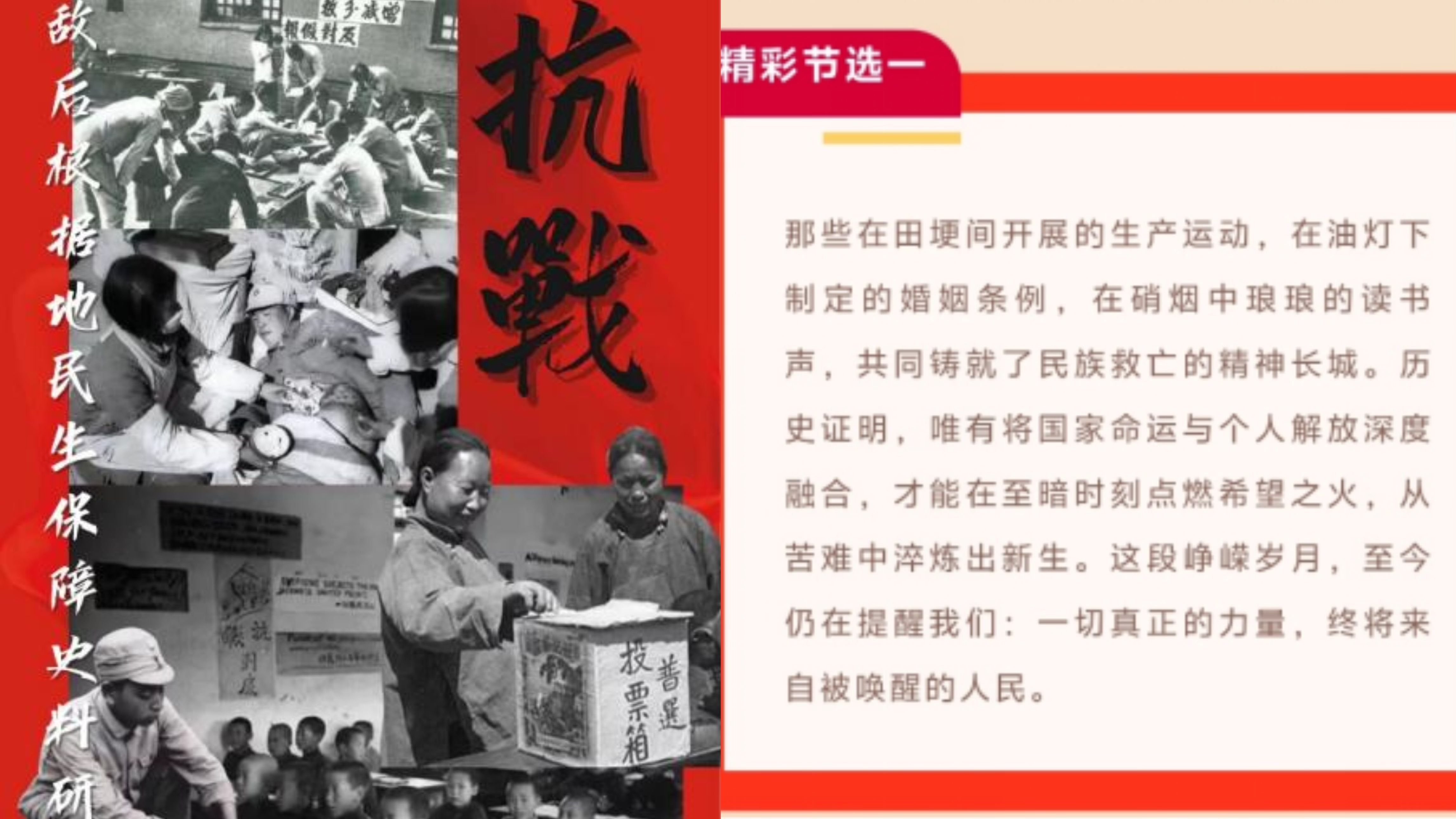 举行“解码烽火岁月中的‘民生答卷’“史料研读活动,通过聚焦敌后根据地的救灾与医疗、民主民生建设、妇女权益保障、学生受教育权保护四大板块,在泛黄的档案文献中解码抗战时期人民的坚韧与智慧,于实证中深化历史认知,让学问扎根于祖国大地。