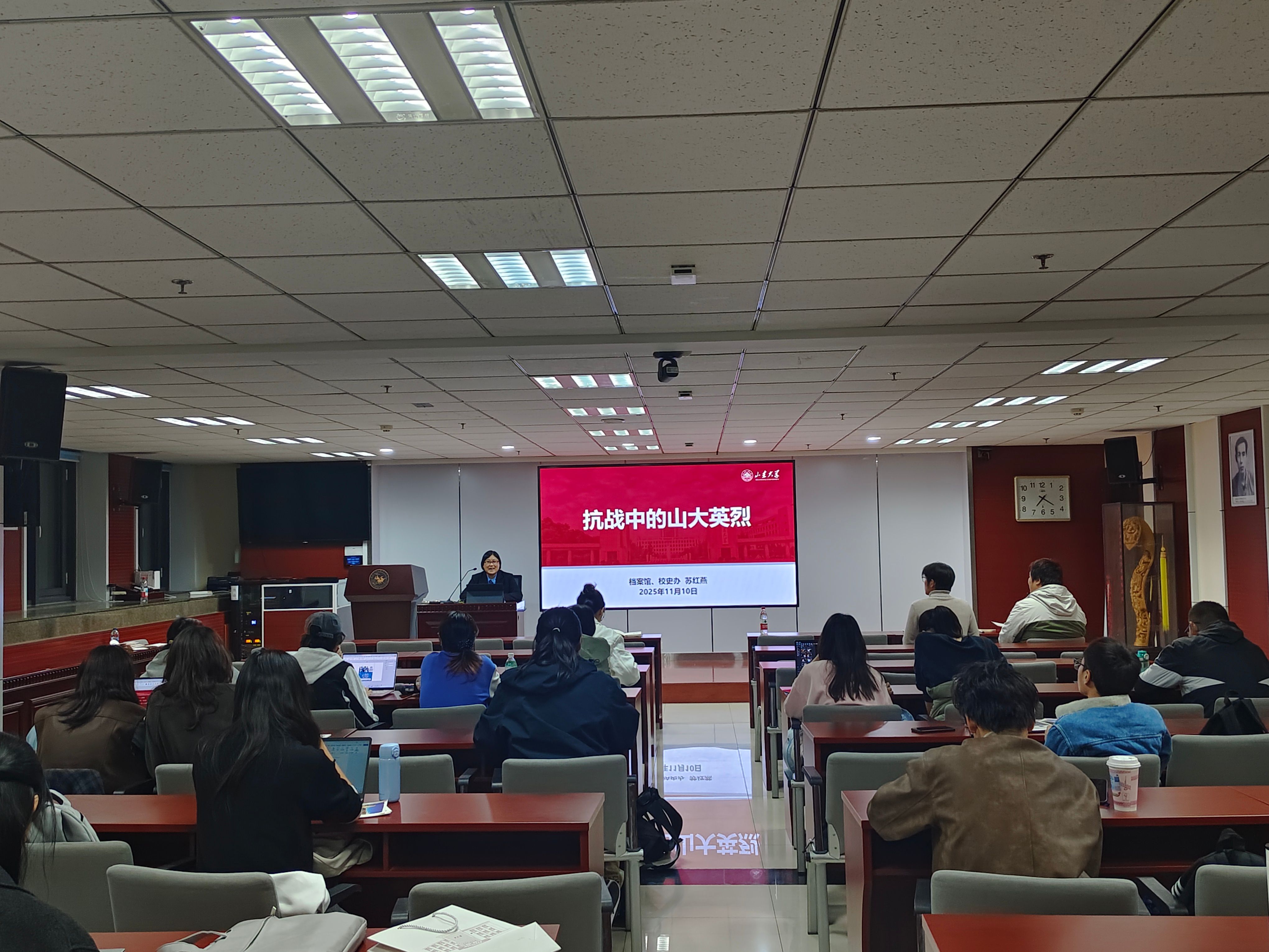 开展“烽火中的山大”主题宣讲,引导同学们重忆抗战峥嵘岁月,激活校史红色基因,并邀请学校档案馆、校史办老师做“抗战中的山大英烈”专题讲座,系统讲述张倬甫、乐以琴等人的伟大历史贡献。