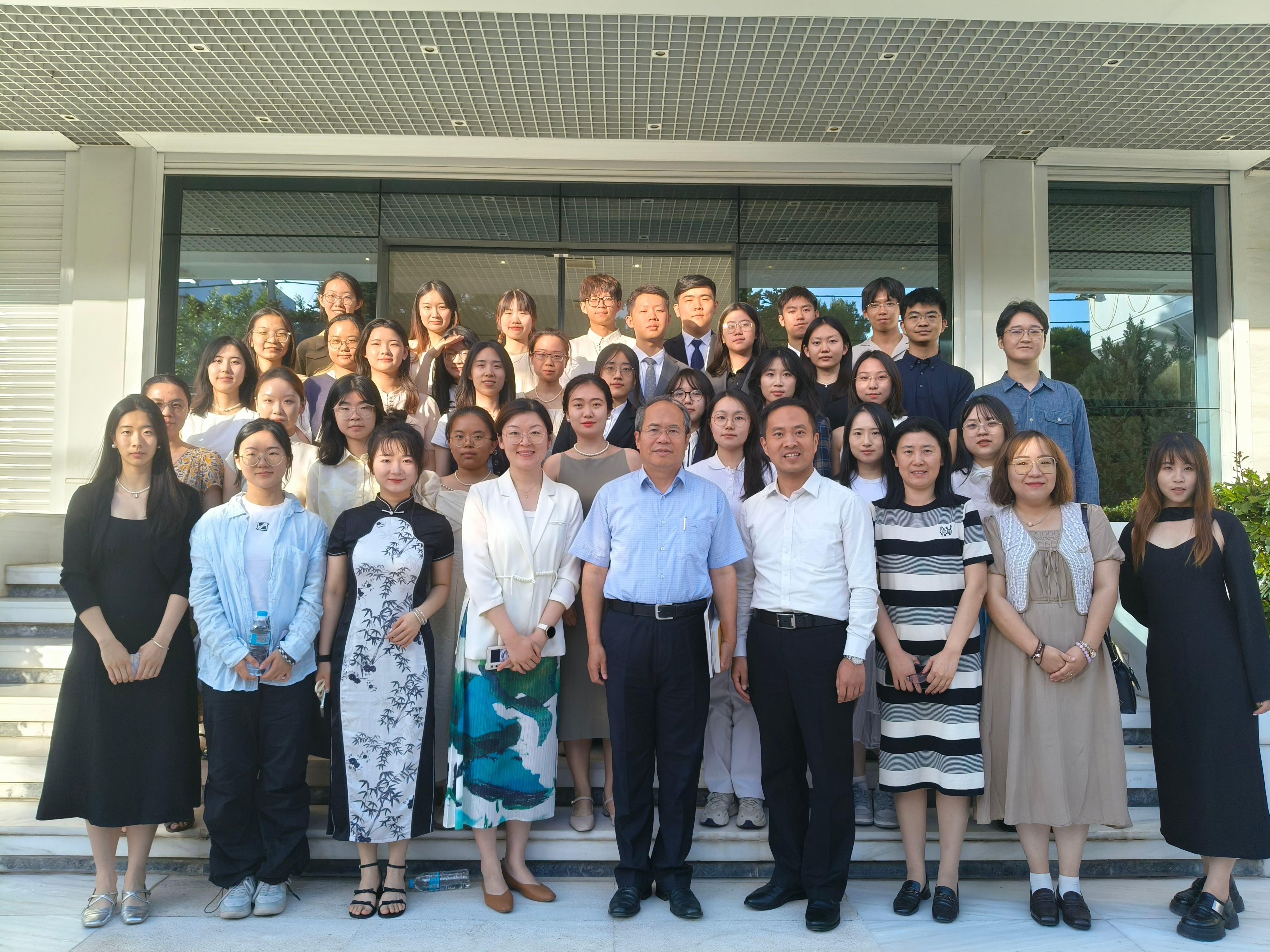 7月9日下午,“中希文明互鉴青年行”山东大学访学团到访中国驻希腊大使馆,与肖军正大使及使馆工作人员座谈交流。首先,使馆的老师介绍了中国和希腊的关系,中希文明互鉴中心的背景和发展情况,以及在希腊访学期间日常生活中的注意事项。之后,王彦伟老师也介绍了山东大学的文史哲学科建设和访学团的有关情况,学生代表分享访学收获与心得。最后,肖军正大使对上述发言进行总结,并从中希文明的起源和发展谈起,鼓励同学们在访学中多体会多思考,结合自身专业所长,为建设中华民族现代文明和中国式现代化,构建人类命运共同体做出应有贡献。